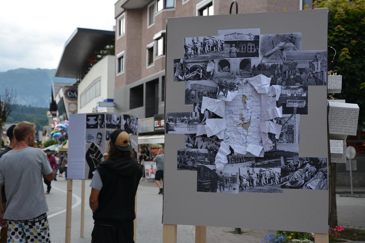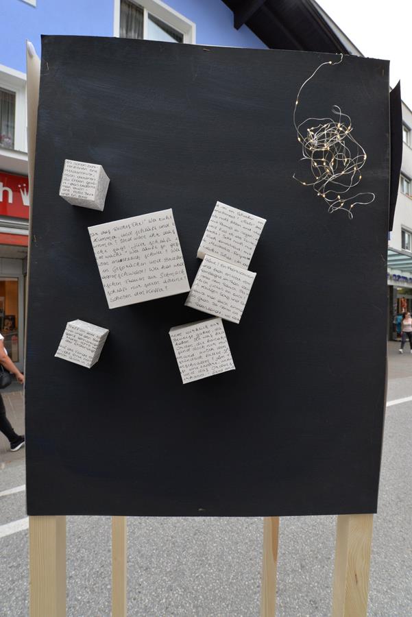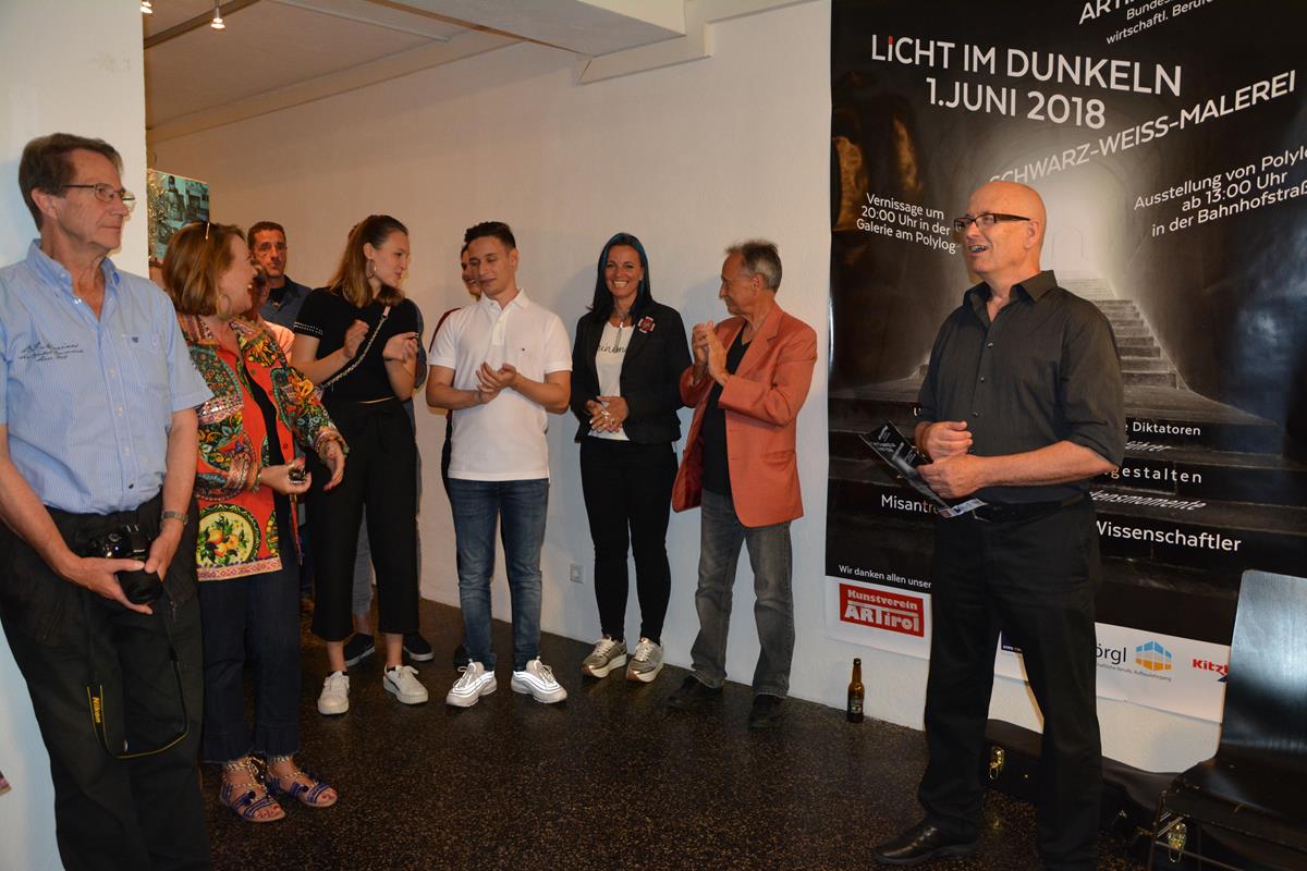 Am 1.Juni 2018 fand in der Galerie am Polylog die Vernissage der Ausstellung „Licht im Dunkeln – Schwarz-Weiß-Malerei“ statt. Insgesamt entstanden 15 Polyloge mit je 4 Plakattafeln zu verschiedenen Gedenkthemen, die von den SchülerInnen der 1. Klasse des Aufbaulehrganges, unter Anleitung von Dipl.-Päd. Petronella Rieder, BEd und dem Kunstverein ARTirol, künstlerisch umgesetzt wurden.
