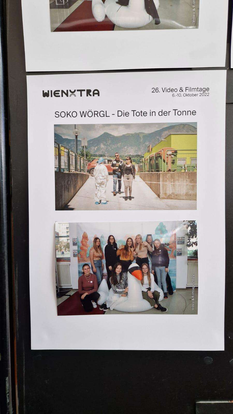 Anfang Oktober verbrachten die Schülerinnen der 2AFW im Rahmen ihrer Projektwoche fünf abwechslungsreiche Tage in Wien. Besichtigt wurden u.a. der Stephansdom, das Parlament, die UNO-City, Schloss Schönbrunn …. Aber der tatsächliche Höhepunkt war die Präsentation des im Juni von der Klasse selbst erstellten Kurzfilms „Soko Wörgl“ beim Festival des jungen Kurzfilms in der Urania in Wien.