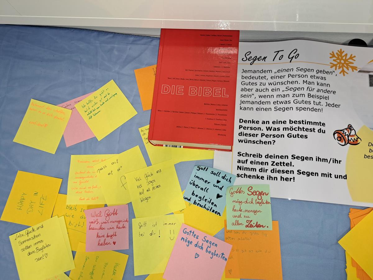 An mehreren Stationen konnten sich Schülerinnen und Schüler unserer Schule im Medienraum auf den Advent und Weihnachten einstimmen und ihre Gedanken formulieren, die sie als „Segen to go“ sammelten. Vorbereitet wurde die Aktion von unserer 1BFW im Rahmen eines Workshops mit Matthias Wolf und Lukas Werlberger.