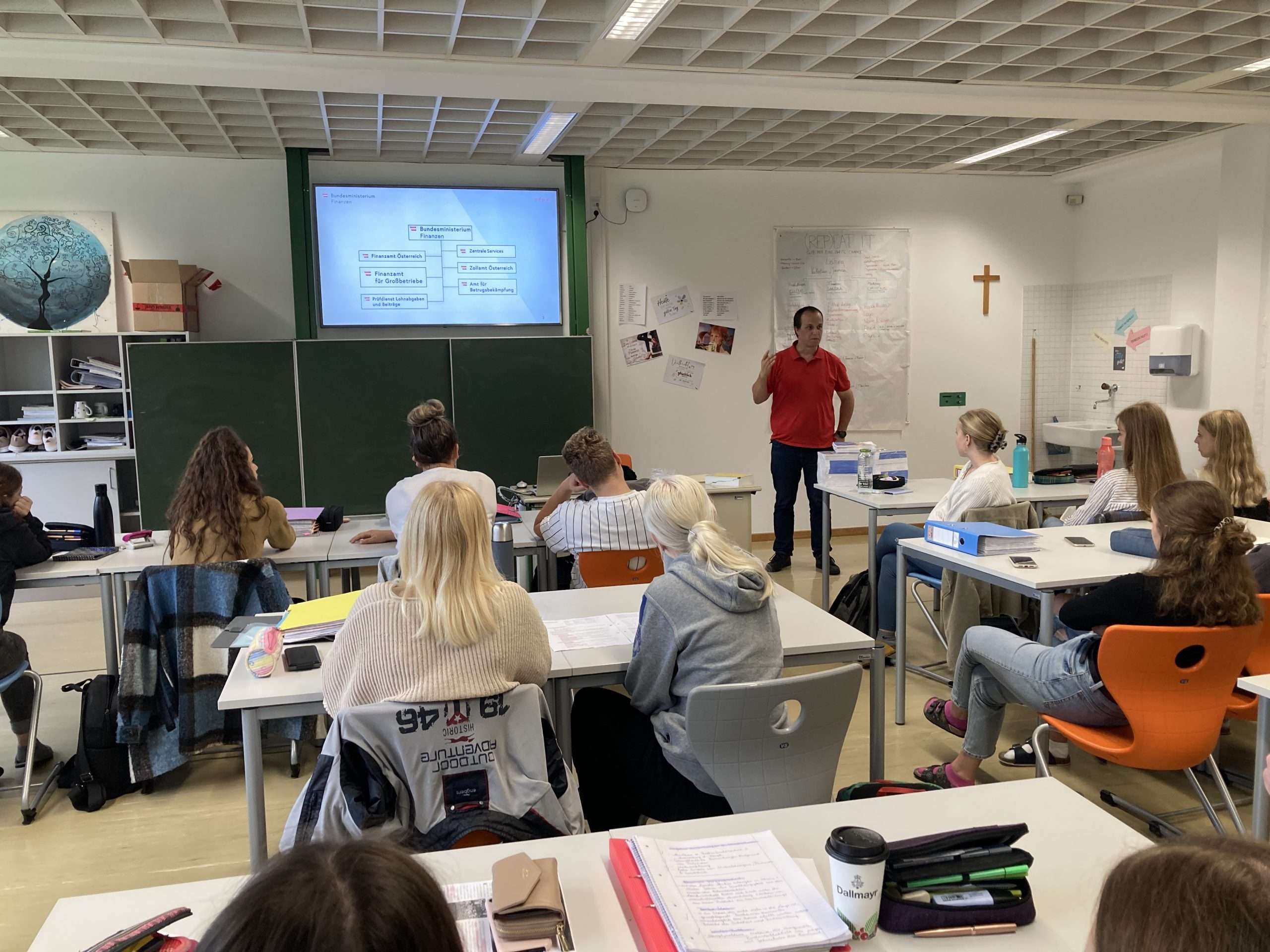 Einen Vertreter des Finanzamt Österreich hautnah erleben durften die beiden ersten Klassen des Aufbaulehrganges. Mag. Weisleitner von der Dienststelle Tirol Ost kam Anfang Juni zu einem praxisnahen Vortrag an die Schule. Zentrales Thema war wie die Schüler:innen die zu viel bezahlte Lohnsteuer vom Pflichtpraktikum zurückbekommen können. Dafür wurden die persönlichen Zugänge der Schüler:innen in FinanzOnline angelegt und sofort freigeschalten – alle konnten für sich selbst die Arbeitnehmerveranlagung an Ort und Stelle durchführen und sich über zusätzliches „Taschengeld“ freuen. Selten wurde der Rechnungswesenunterricht so aufmerksam mitverfolgt ;-).