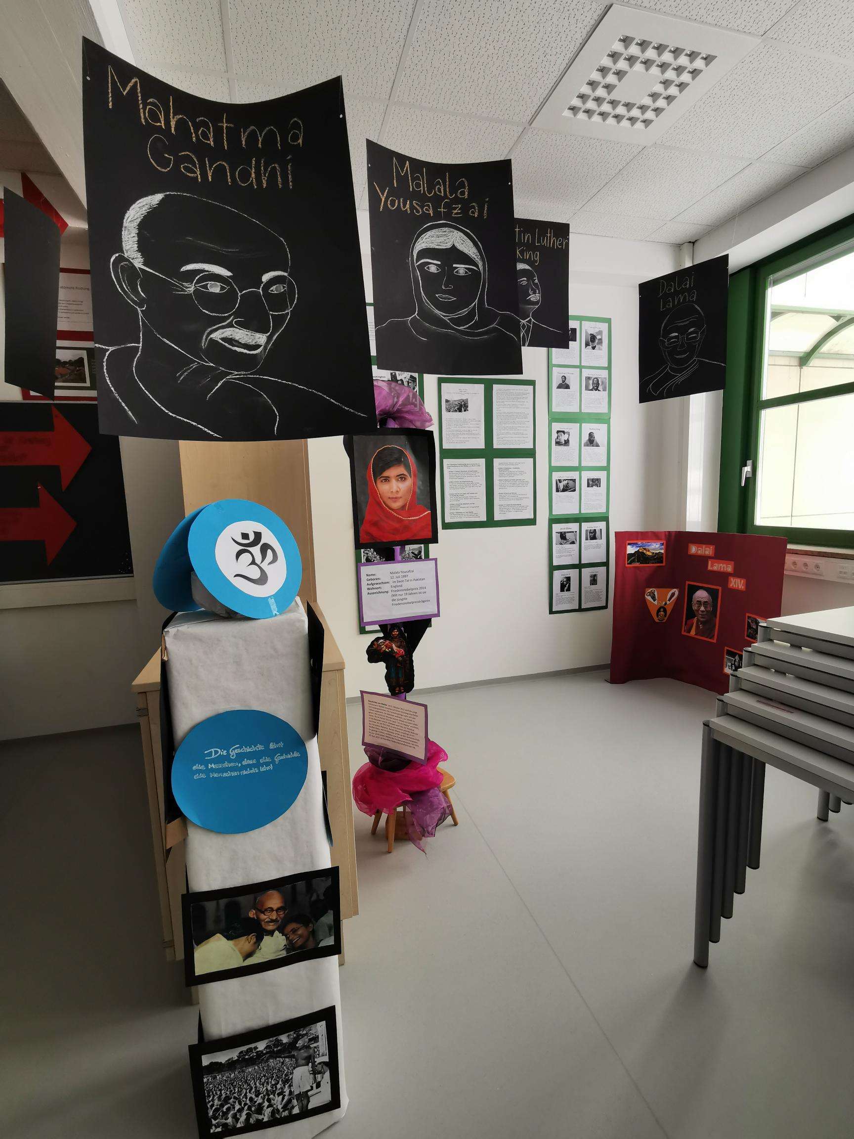 Ganz unter dem Motto „Soziale Verantwortung“ haben Schüler*innen der Klassen 1A, 2B, 3A, 3B, 1ALA und 2AL im Religionsunterricht und im Ethik-Unterricht in gemeinschaftlicher Arbeit Ausstellungsstücke und Plakate gestaltet. Sie erarbeiteten Biographien von Friedensnobelpreisträger*innen, wobei Werte wie Friede, Menschenwürde, Bildung, Diskriminierung, Gewaltlosigkeit und Einsatz für den Nächsten thematisiert werden. Schaut doch in der Bibliothek vorbei – es lohnt sich.