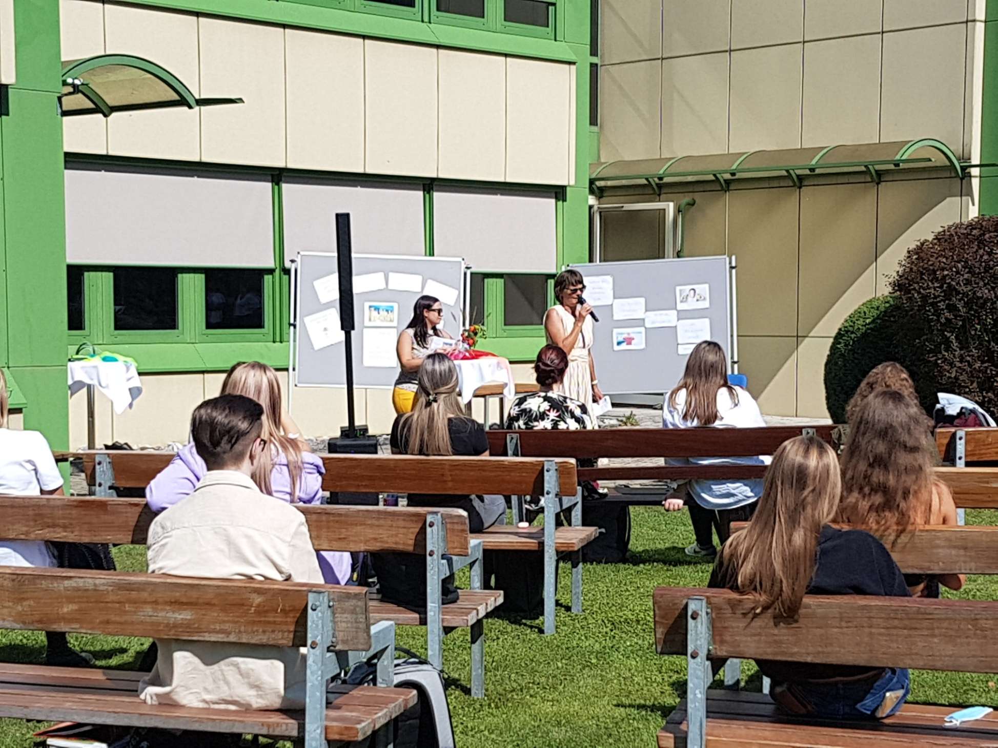 Die Schulgemeinschaft steht zusammen! Gemeinsam geht es mit Distanz in ein besonderes neues Schuljahr. Die Eröffnungsfeier fand heuer unter freiem Himmel statt. Besser hätten wir nicht starten können.