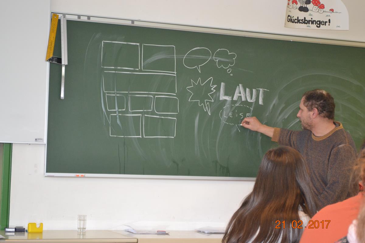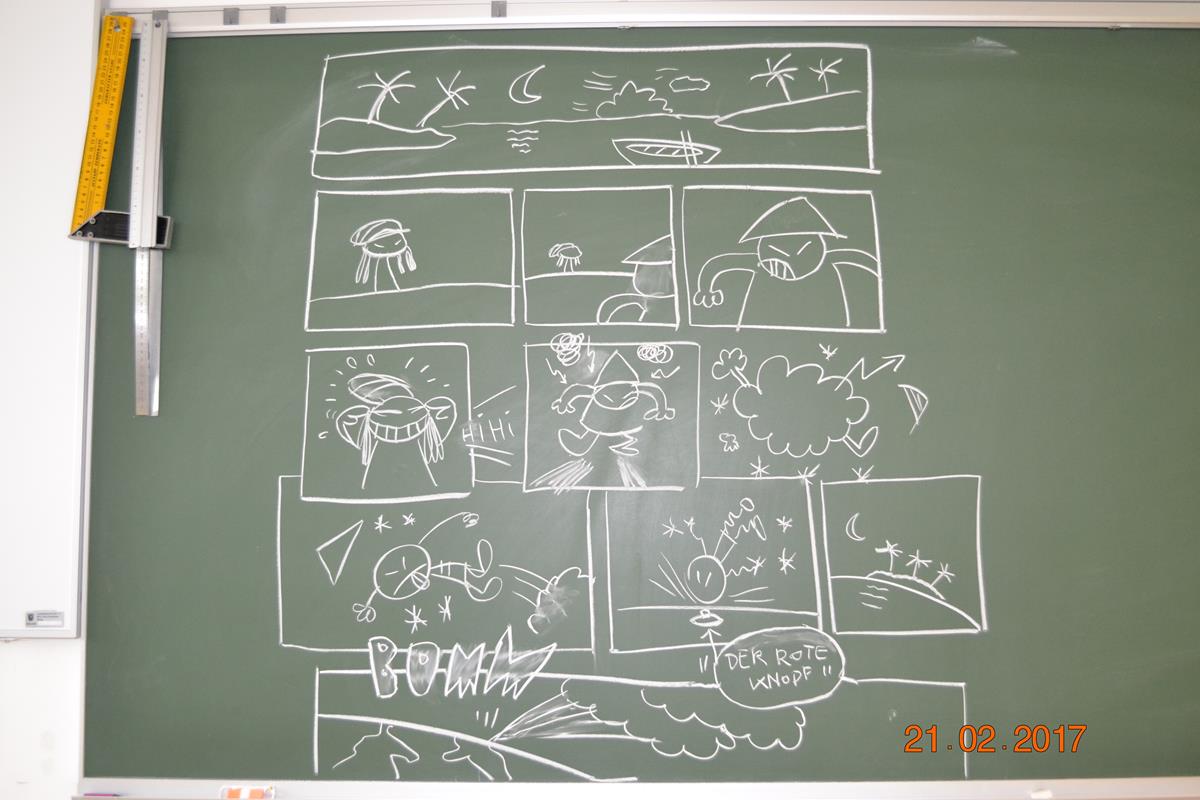 Gemeinsam zeichneten wir eine Comicfigur und eine kurze Geschichte wie im Comic-Heft.