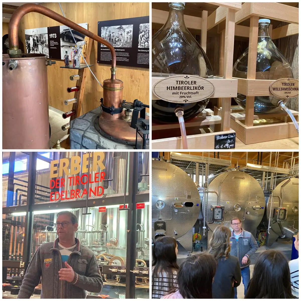 Im Rahmen des Fachs Unternehmens- und Dienstleistungsmanagement besuchte die 2. Klasse des Aufbaulehrgangs – mit den beiden Lehrpersonen Linda Plunser und Manfred Mühllechner – die Edelbrennerei Erber in Brixen im Thale. Die Destillerie befindet sich inmitten der idyllischen Tiroler Berglandschaft und ist ein traditioneller Betrieb, der sich auf die Herstellung von hochqualitativen Spirituosen spezialisiert hat.