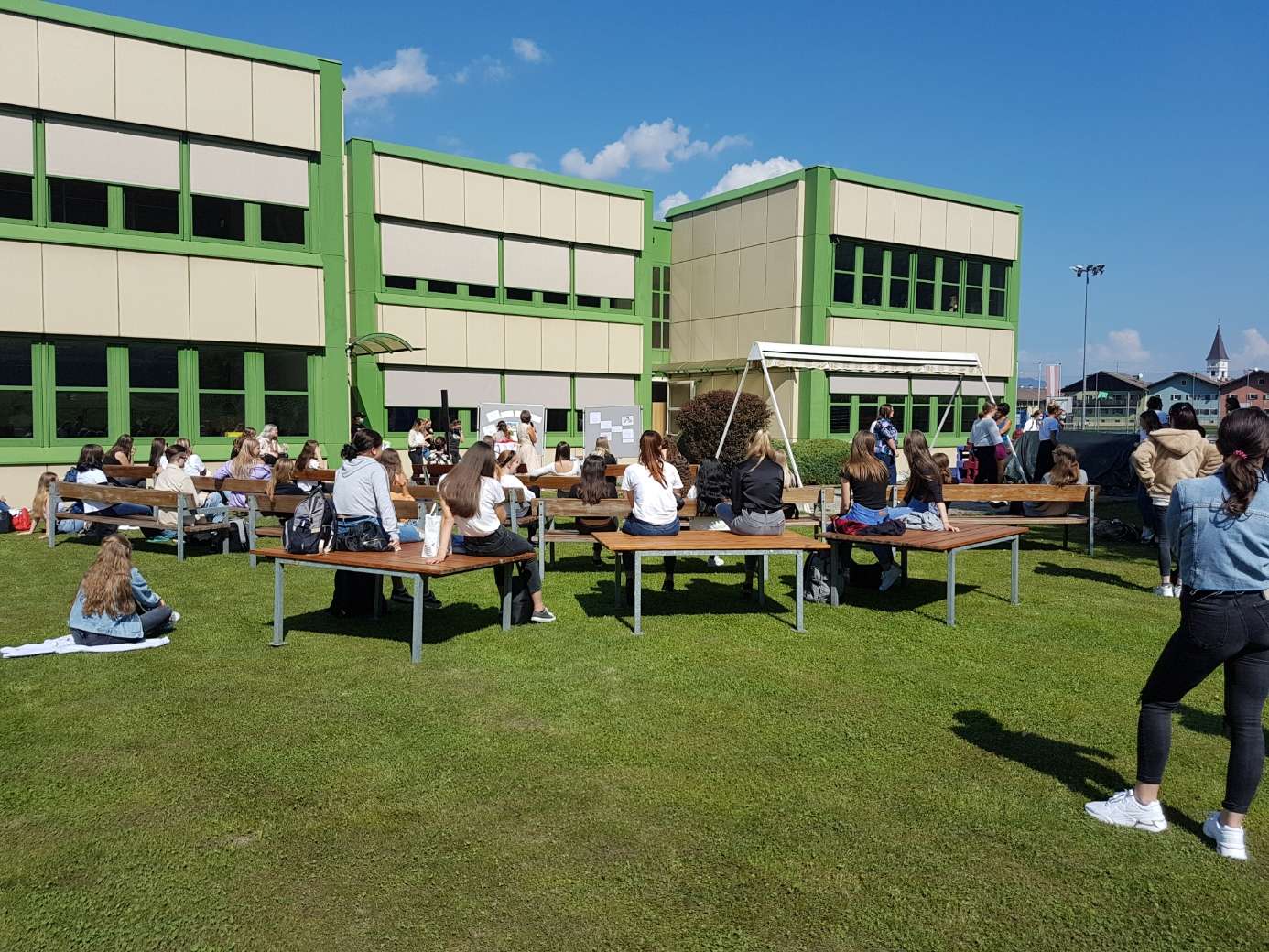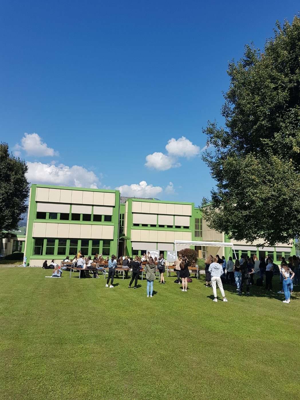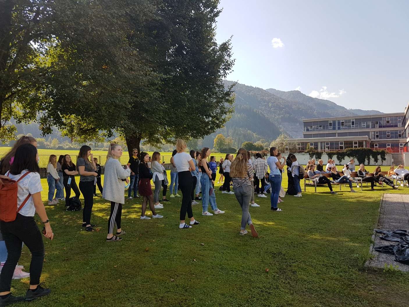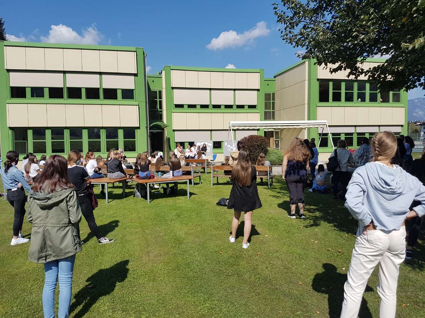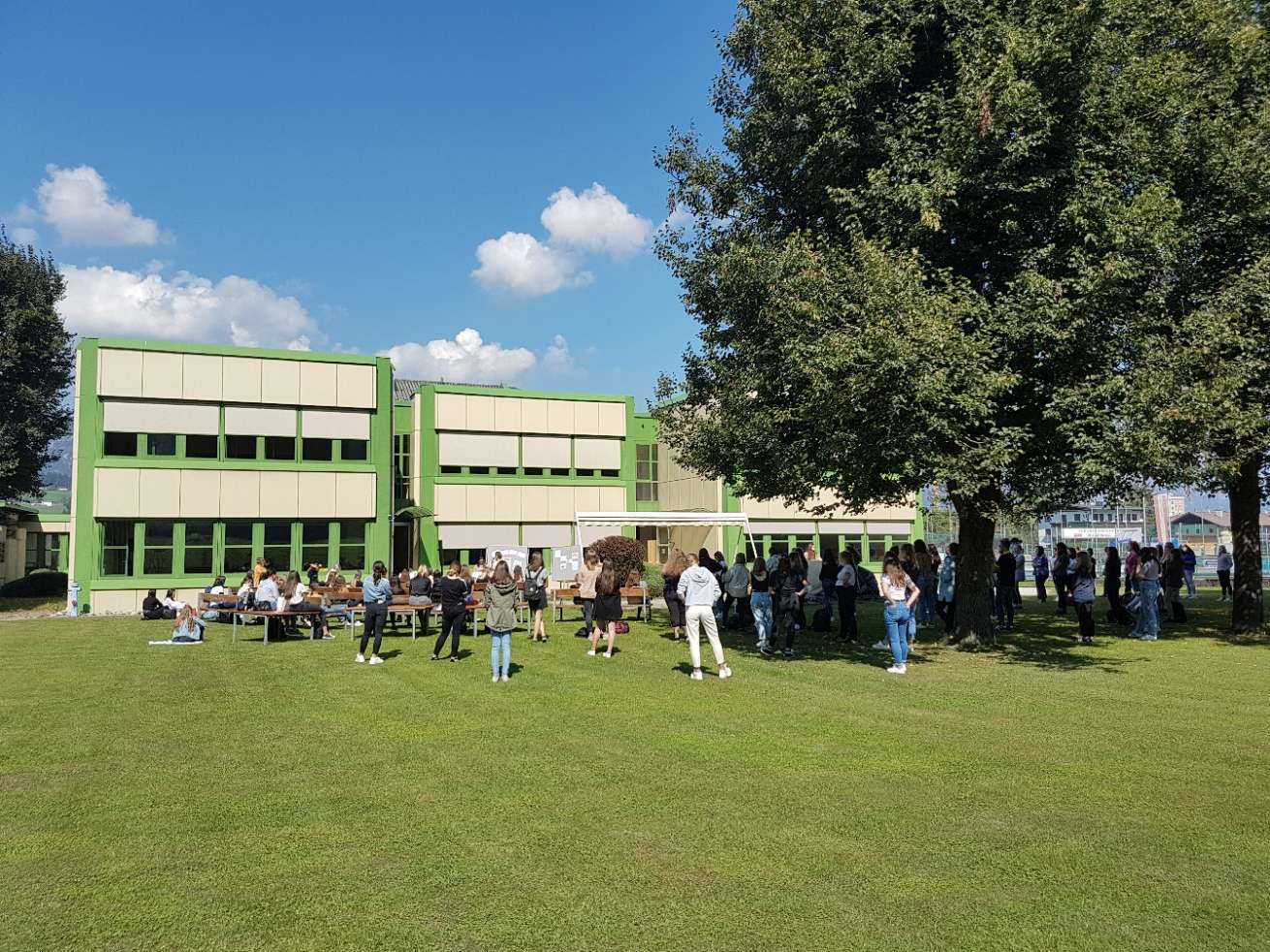 Die Schulgemeinschaft steht zusammen! Gemeinsam geht es mit Distanz in ein besonderes neues Schuljahr. Die Eröffnungsfeier fand heuer unter freiem Himmel statt. Besser hätten wir nicht starten können.