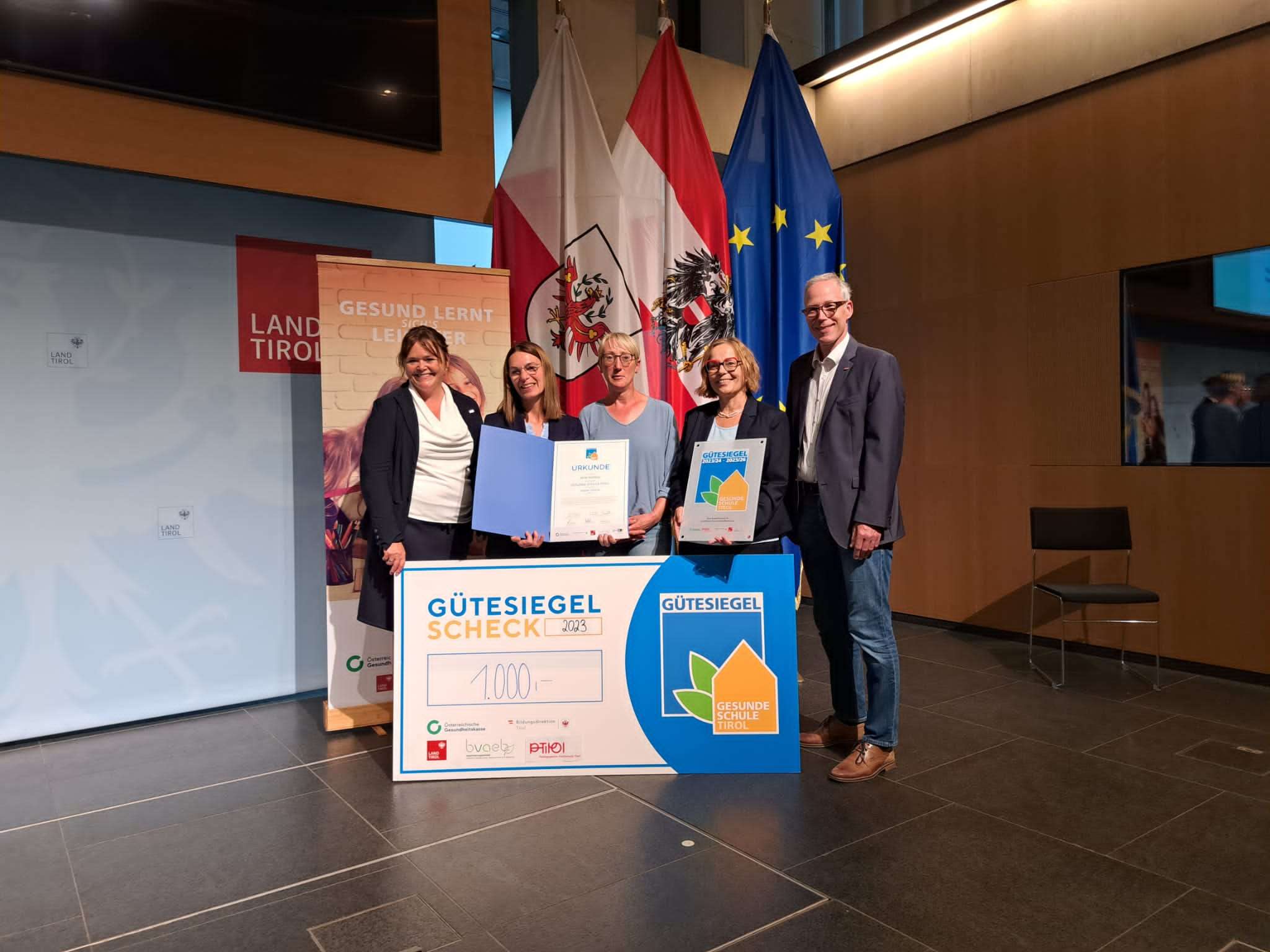 Zum dritten Mal wurde unsere Schule dieses Jahr mit dem Gütesiegel „Gesunde Schule Tirol“ ausgezeichnet. Wir danken ganz besonders unseren Lehrerinnen Alexandra Kistl und Christiane Schneider, die mit vollem Einsatz dafür sorgen, dass an der BFW Wörgl und dem Aufbaulehrgang immer alles „rundum gesund“ läuft.
