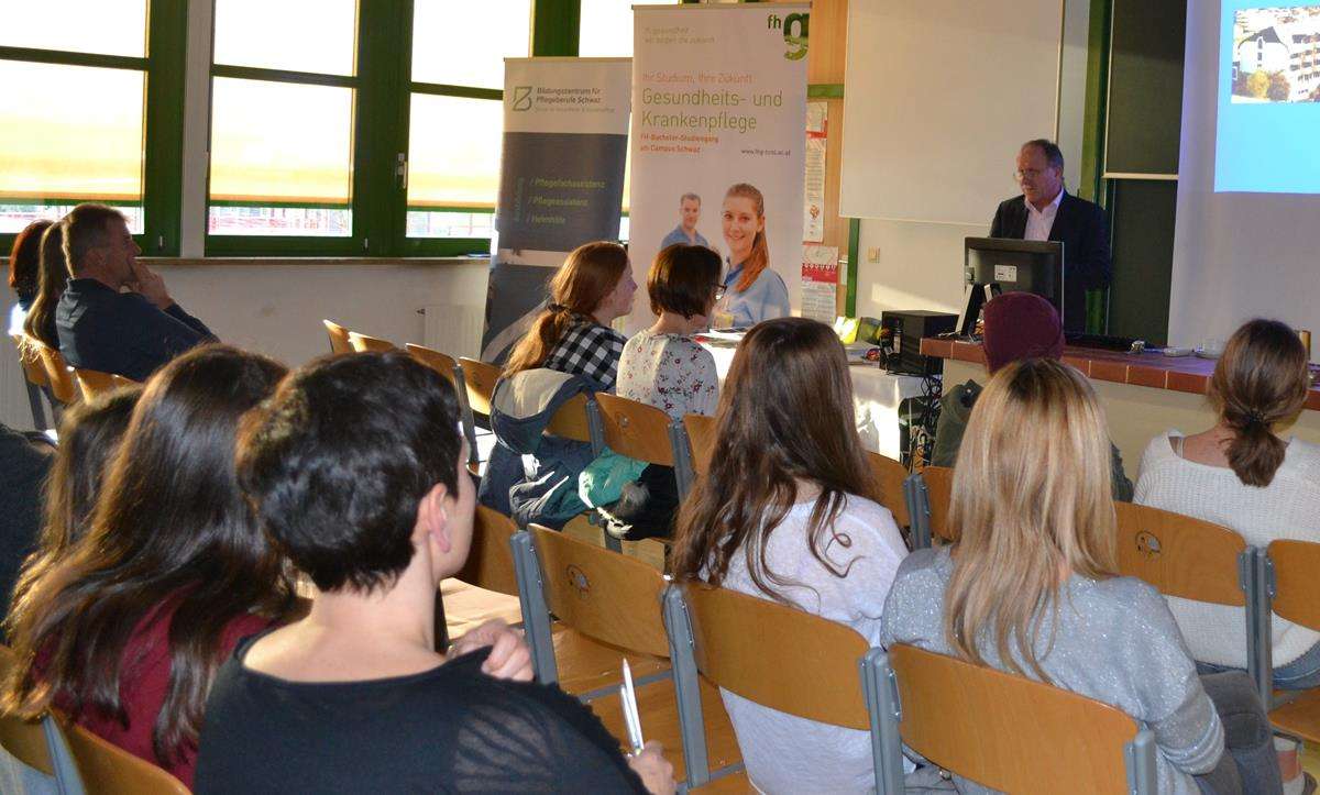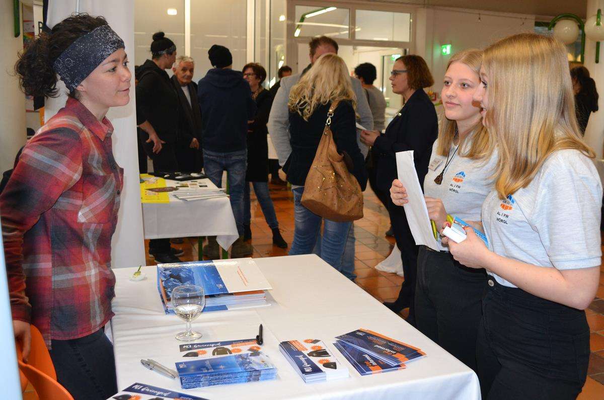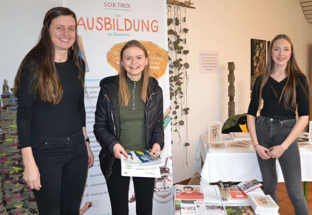 Neben allgemeinen Informationen über die Schule erhielten die Interessierten nähere Informationen über die vertiefenden Inhalte der Fachschule „Gesundheit und Soziales“ und „Kreativität, Office und Medien“ sowie des Aufbaulehrganges „Gesundheit- und Sozialmanagement“. Von besonderem Interesse war für alle die Präsenz diverser Betriebe und weiterführender Ausbildungsmöglichkeiten. Neben der Fachhochschule Kufstein, der Fachhochschule für Gesundheit, der Pädagogischen Hochschule Tirol, der Schule für Sozialbetreuungsberufe, dem Tourismuskolleg und dem MCI waren auch wirtschaftliche Unternehmen, u.a. die Raiffeisenbank Kufstein, Transped und die Polizei vertreten.