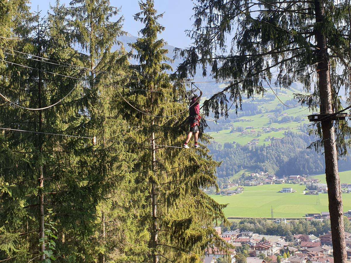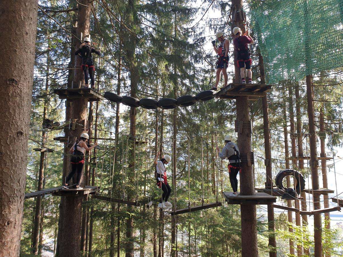 Es braucht schon Mut und Zuversicht – vor allem in die eigenen Fähigkeiten – um sich in in 20 Meter Höhe durch den Kletterparcours in Kaltenbach zu hanteln. Respekt an alle! Mit so viel Selbstvertrauen und Zusammenhalt gelingt bestimmt auch dieses herausfordernde Schuljahr.