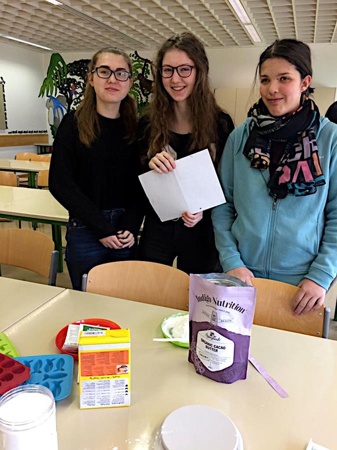 16 Mädchen und Chemie? Rauch – Gestank – Explosionen, bei uns sicher nicht! Wir versetzten unseren Chemiesaal in eine duftende, wohlriechende Produktionsstätte für Naturkosmetika. Unter dem Motto „Herstellung von Naturkosmetika – Schön ist die Frau“ wurden dieses Schuljahr diverse Kosmetikprodukte im Chemieunterricht hergestellt.