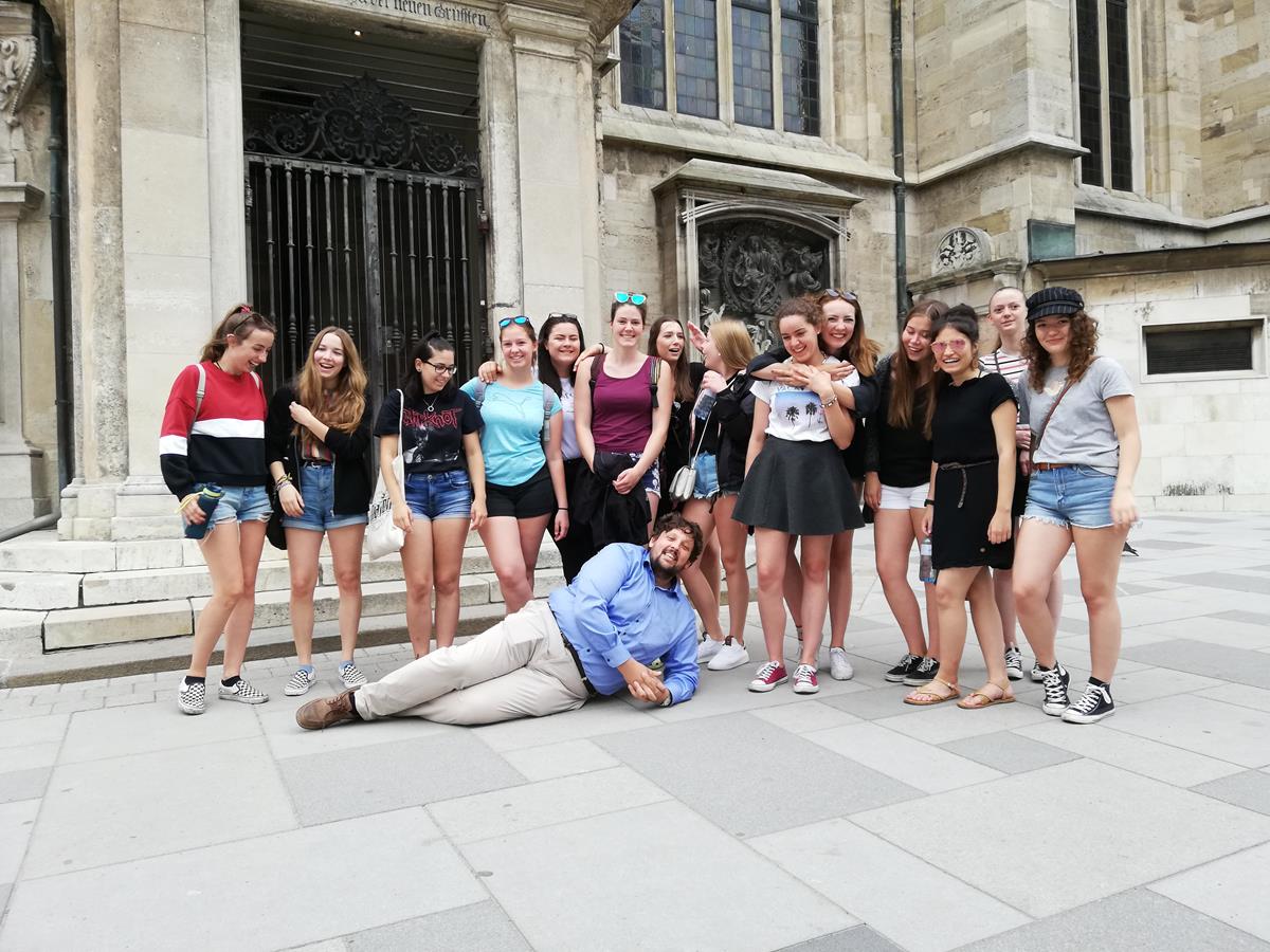 Am zweiten Tag dann Kultur und Geschichte: Die Katakomben des Stephansdom stehen am Programm. Florian unser Domführer kümmert sich rührend um unsere Mädels. Unsere Damen sind derart begeistert, dass sie Florian dazu bewegen können, einen Teil der Katakomben (mit Sargrutsche) zu besichtigen, der eigentlich nicht am allgemeinen Führungsplan zu finden ist. Florian plaudert aus dem Nähkästchen, der krönende Abschluss der Führung ist ein sehr gelungenes Gruppenfoto samt liegendem Domführer!