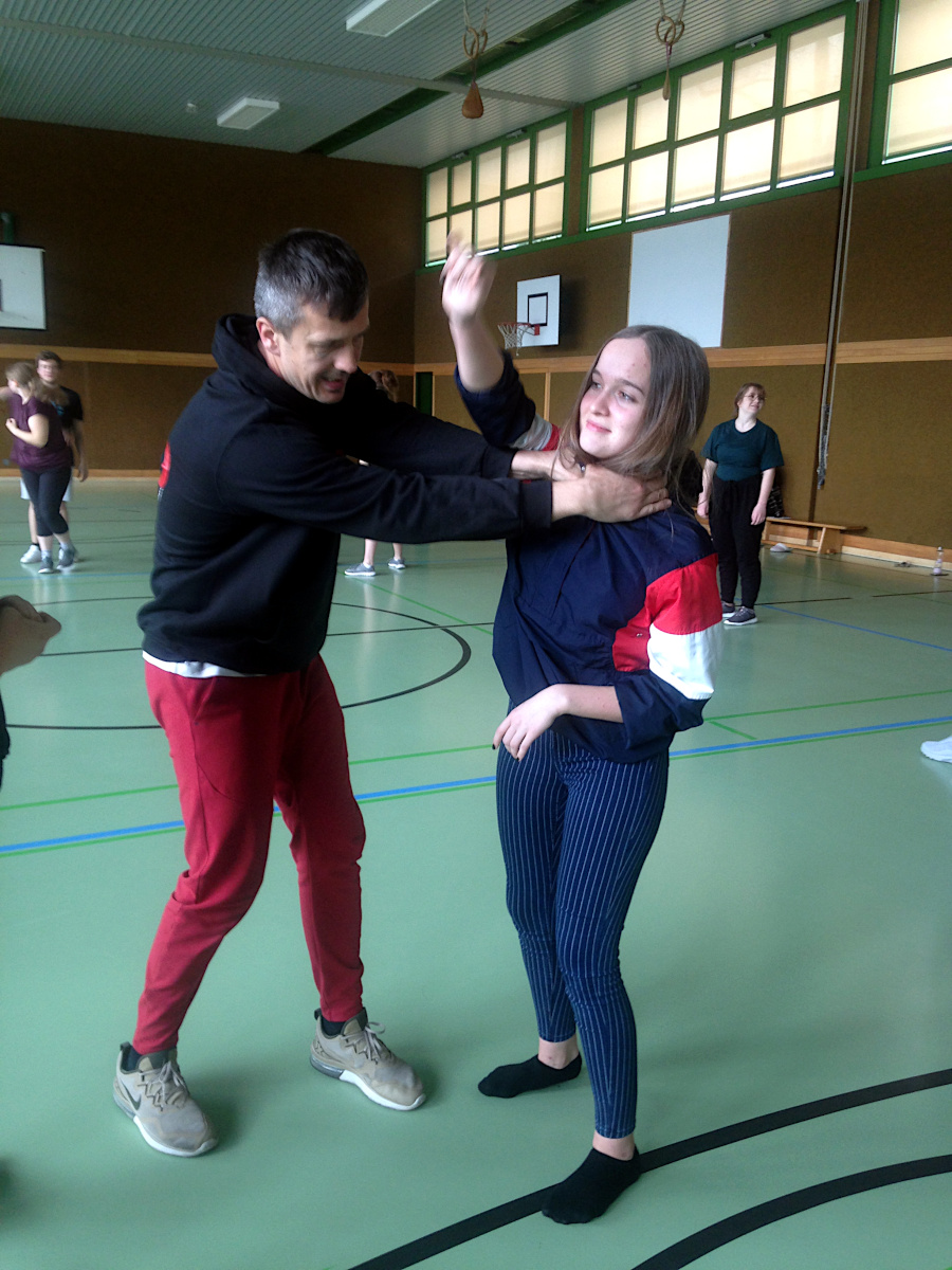 Wie jedes Schuljahr kam auch heuer wieder Juso Prosic, staatlich geprüfter Trainer und einer der erfolgreichsten Kampfsportler Österreichs, an unsere Schule. Die 1. Klasse Aufbaulehrgang und alle 2. Klassen der Fachschule absolvierten ein speziell auf Frauen zugeschnittenes Selbstverteidigungstraining.