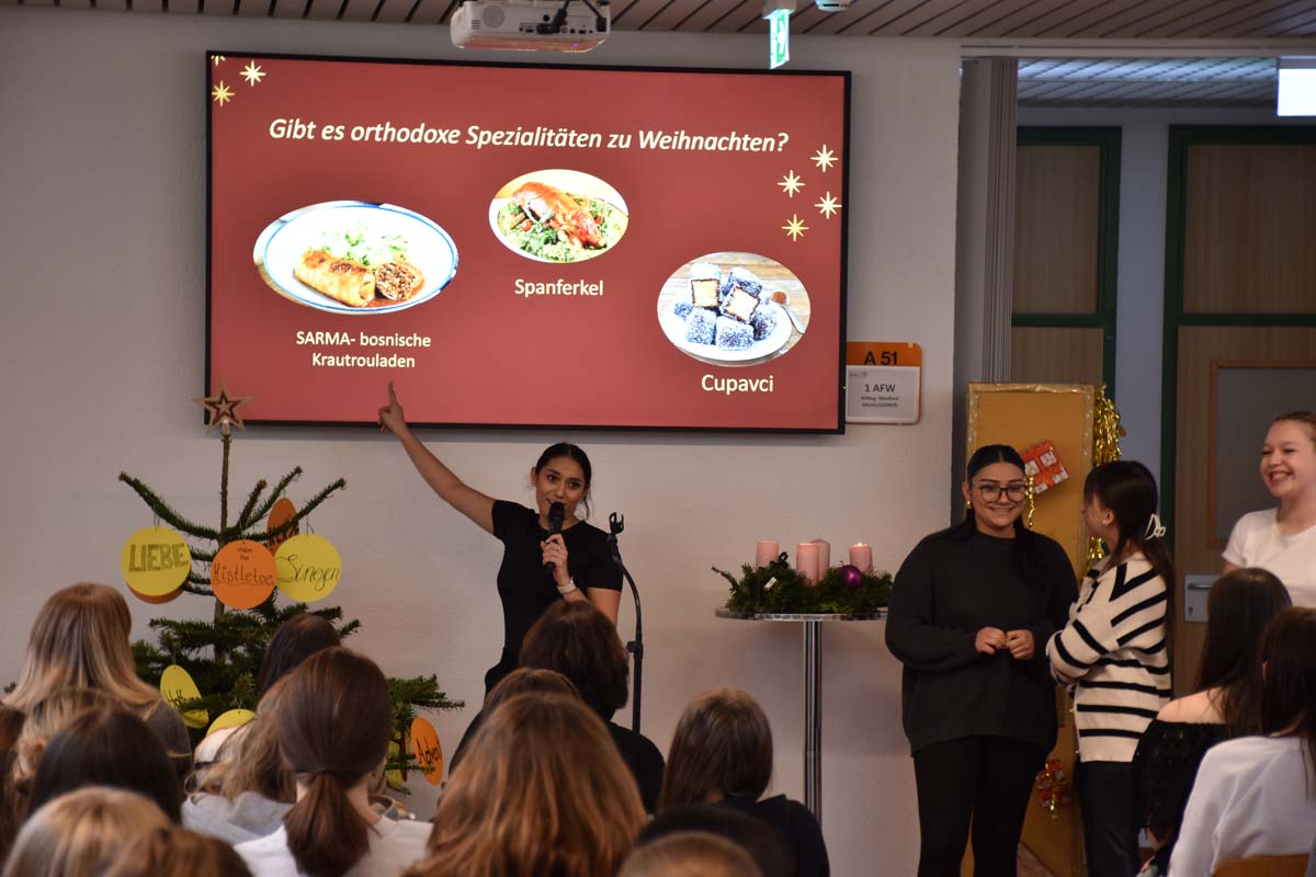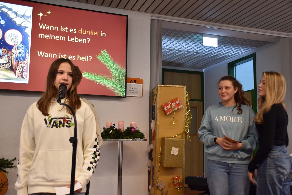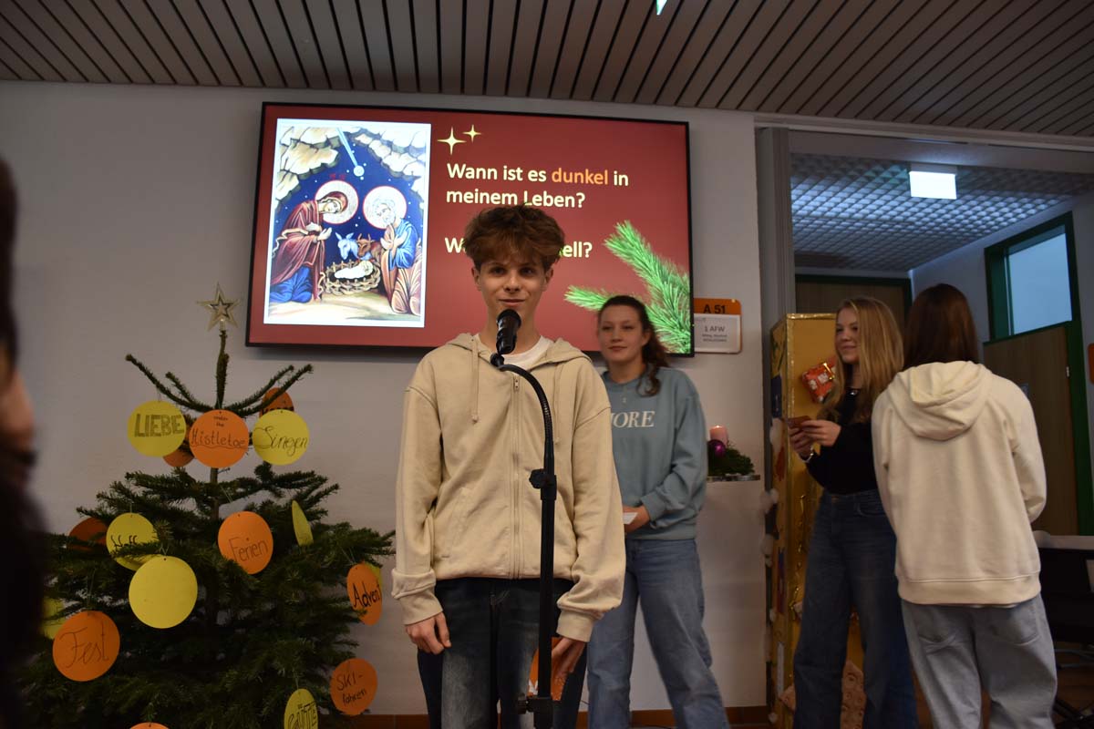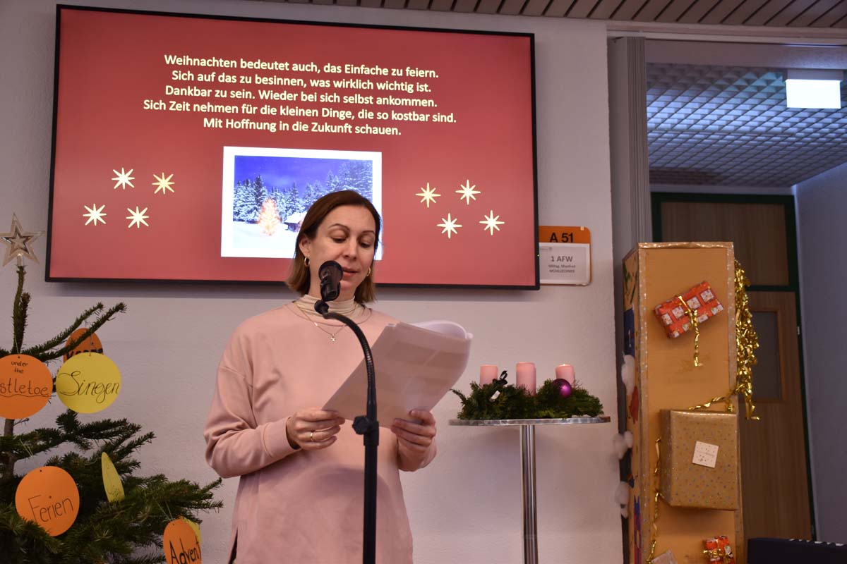Alle Klassen beteiligten sich und gestalteten ein abwechslungsreiches Programm. Es wurden stimmungsvolle Gedichte vorgetragen, musikalische Beiträge sorgten für eine tolle Atmosphäre. Den Abschluss bildete ein gemeinsames Singen von „Feliz Navidad“, das alle Anwesenden mit Schwung in die Ferien entließ.