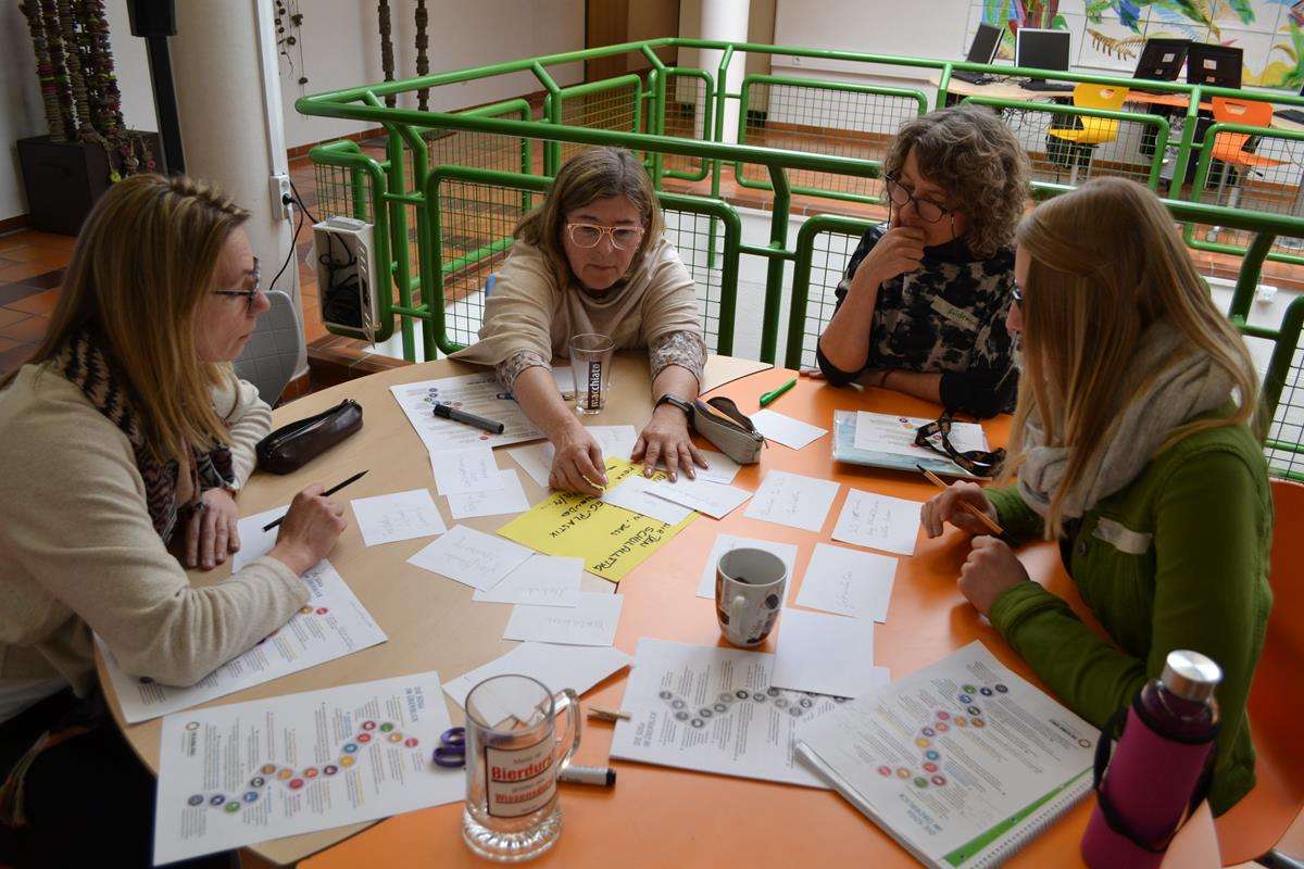In einem weiteren Schritt wurden konkrete Projekte erarbeitet, die man an der Schule umsetzen könnte. Einige Vorschläge dabei waren etwa die Idee vom einem Brunnen mit Frischwasser für die gesamte Schulgemeinschaft, die Idee von (tatsächlich!) papierfreiem Unterricht, ein Klassenprojekt zum Thema „Wo kommt unsere Kleidung her?“ oder ein Gemeinschaftsprojekt, bei dem SchülerInnen andern SchülerInnen Gutes tun.